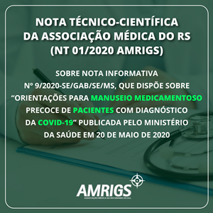 NOTA TÉCNICO-CIENTÍFICA DA AMRIGS SOBRE NOTA “ORIENTAÇÕES PARA MANUSEIO MEDICAMENTOSO PRECOCE DE PACIENTES COM DIAGNÓSTICO DA COVID-19” PUBLICADA PELO MINISTÉRIO DA SAÚDE