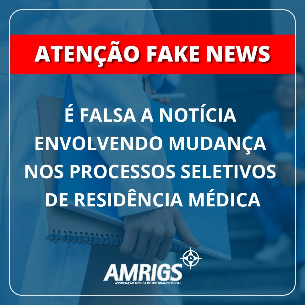 Fake News circula com uma suposta Nota Técnica recomendando a não aceitação de candidatos formados por antecipação de colação de grau em processos seletivos de Programas de Residência Médica A Associação Médica do Rio Grande do Sul (AMRIGS) alerta que é falsa a notícia divulgada nas redes sociais e aplicativos de mensagens relacionando […]