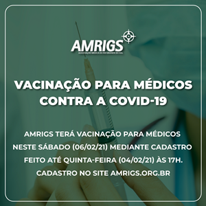 Vacina contra COVID-19 para médicos neste sábado na AMRIGS
