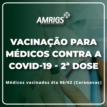 ATENÇÃO! Médicos e demais profissionais da saúde vacinados na sede da Associação Médica do Rio Grande do Sul (AMRIGS) dia 06/02/21. A Secretaria Municipal de Saúde de Porto Alegre orienta: – A segunda dose da vacina CoronaVac (Butantan) estará disponível de 01 a 05 de março/21 conforme faixa etária, respeitando as normas da bandeira preta, […]