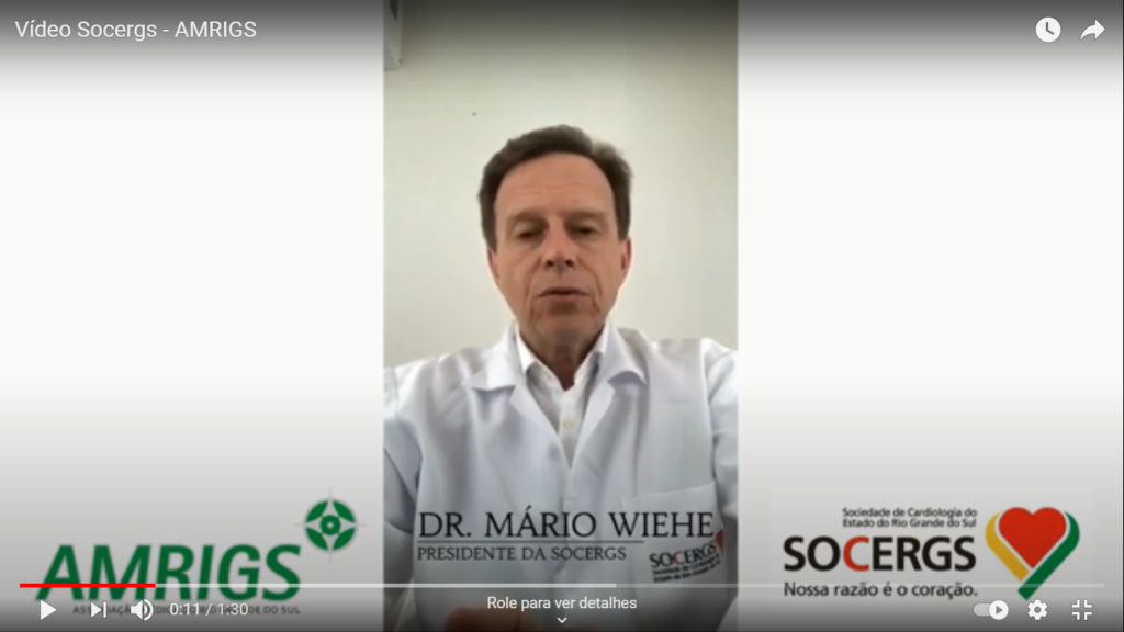 Associação Médica do Rio Grande do Sul (AMRIGS) e Sociedade de Cardiologia do Estado do Rio Grande do Sul (SOCERGS) alertam para a importância da manutenção dos protocolos de segurança para prevenção da COVID-19. Assista ao vídeo do Dr. Mário Wiehe, presidente da SOCERGS. https://www.youtube.com/watch?v=YT21sTB217U