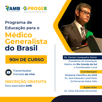 PROGEB é gratuito a todos os médicos associados adimplentes e tem o selo de qualidade AMB – Associação Médica Brasileira Foi lançado oficialmente o Programa de Educação para o Médico Generalista do Brasil, PROGEB. Idealizado pela Associação Médica Brasileira, terá aulas mensais, ao vivo, em plataforma digital. A programação cobre os conteúdos essenciais das 55 […]