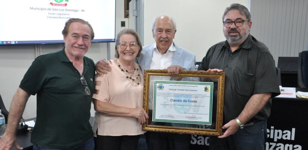 Na tarde de segunda-feira, 11 de dezembro, o Plenário da Câmara de Vereadores de São Luiz Gonzaga foi palco de uma emocionante homenagem ao médico cirurgião Clandio da Costa. O Título de Cidadão São-Luizense foi entregue ao renomado profissional, reconhecendo seus notáveis 60 anos de dedicação à Medicina. A proposta de honraria foi apresentada pelo […]