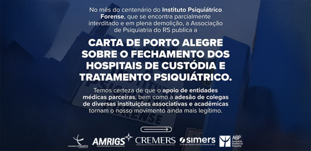 AMRIGS divulga Carta de Porto Alegre em defesa da continuidade dos Hospitais de Custódia e Tratamento Psiquiátrico