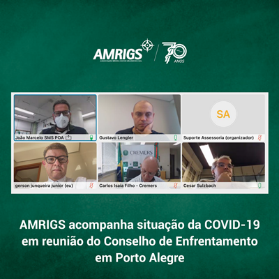 A 21ª Reunião Virtual do Conselho Multissetorial para o Enfrentamento da COVID-19, realizada na sexta-feira (11/06), apresentou a análise situacional do coronavírus no mês de junho em Porto Alegre. O presidente da Associação Médica do Rio Grande do Sul (AMRIGS), Dr. Gerson Junqueira Jr., acompanhou o balanço de forma online.