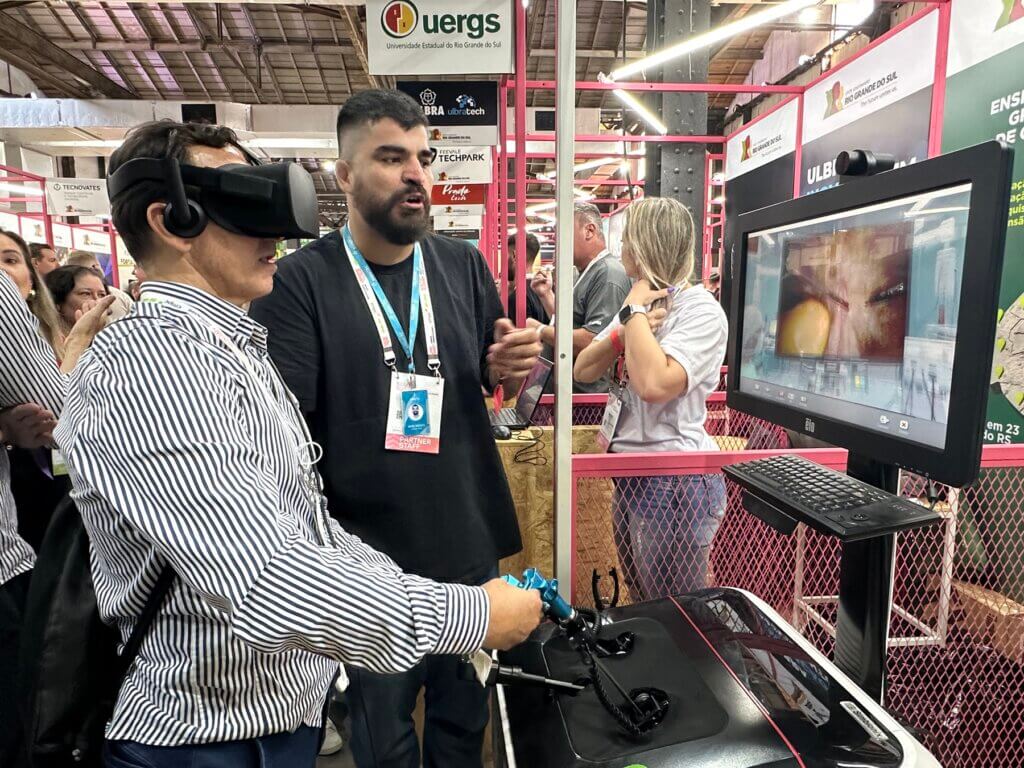 O destaque do espaço da AMRIGS, em parceria com o Instituto Simutec, foi o Lap Mentor, equipamento de cirurgia videolaparoscópica que, combinado ao uso do óculos de realidade virtual, simula o ambiente de um bloco cirúrgico, proporcionando também uma sensação tátil e realidade aumentada. Durante o South Summit, os visitantes puderam conhecer e experimentar esse simulador direcionado a médicos e estudantes de Medicina.