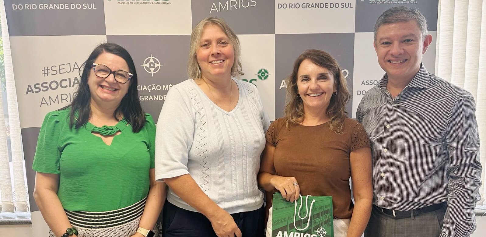 Associação Médica do Rio Grande do Sul (AMRIGS) recebeu hoje representantes da Universidade Federal de Ciências da Saúde de Porto Alegre (UFCSPA) em uma reunião marcada por diálogos construtivos e sinergia de projetos. O encontro, liderado pelo presidente da AMRIGS, Dr. Gerson Junqueira Jr., e pelo gerente Ronald Grecco, teve como objetivo principal fortalecer os laços entre as instituições. Participaram também a reitora da UFCSPA, Dra. Lúcia Pellanda, a vice-reitora, Dra. Jenifer Saffi, e a coordenadora do curso de Medicina, Dra. Maria Eugênia Pinto.