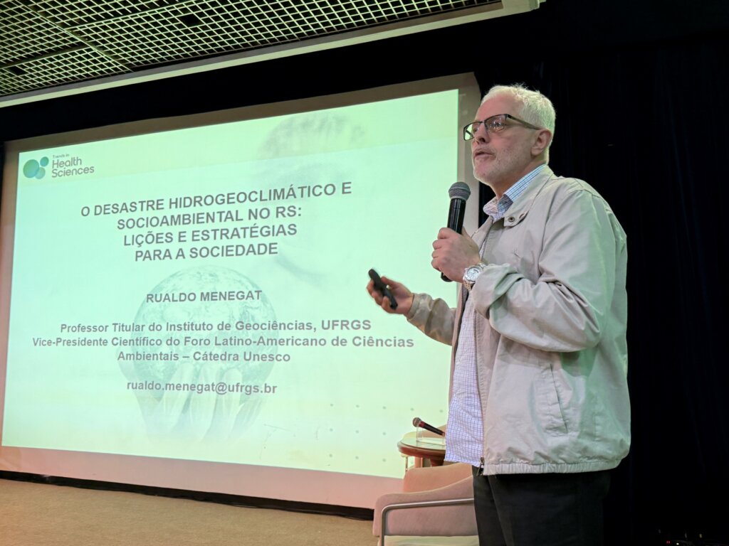 Dr. Rualdo Menegat, professor e geólogo, destacou a complexidade de compreender o assunto sob diferentes perspectivas.