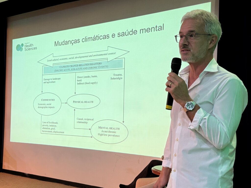 “As mudanças climáticas afetam a saúde mental de diferentes maneiras. Há trajetórias mais indiretas, como secas prolongadas que geram tensões econômicas e acabam provocando migrações forçadas, com impactos psicossociais. No entanto, nosso foco atual está mais voltado à exposição direta a eventos climáticos extremos e seus efeitos imediatos sobre o bem-estar psicológico das pessoas”, afirmou o especialista.