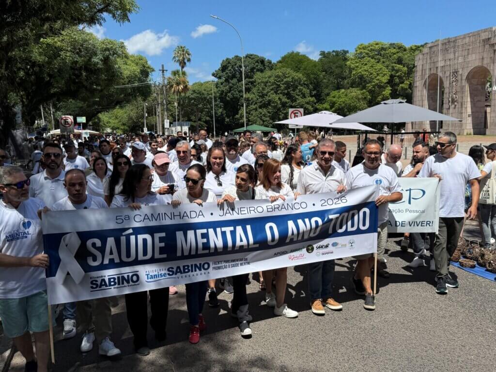 A 5ª Caminhada Janeiro Branco foi realizada em Porto Alegre, no domingo, dia 4 de janeiro, e reuniu a população no Parque Farroupilha, em um ato simbólico de conscientização sobre a importância da saúde mental. A iniciativa foi promovida pelo Gabinete da Vereadora Psicóloga Tanise Sabino, em parceria com o Gabinete do Deputado Elizandro Sabino, e contou com a participação do presidente da Associação Médica do Rio Grande do Sul (AMRIGS), Dr. Gerson Junqueira Jr.