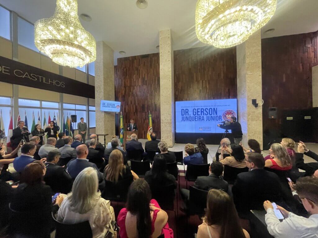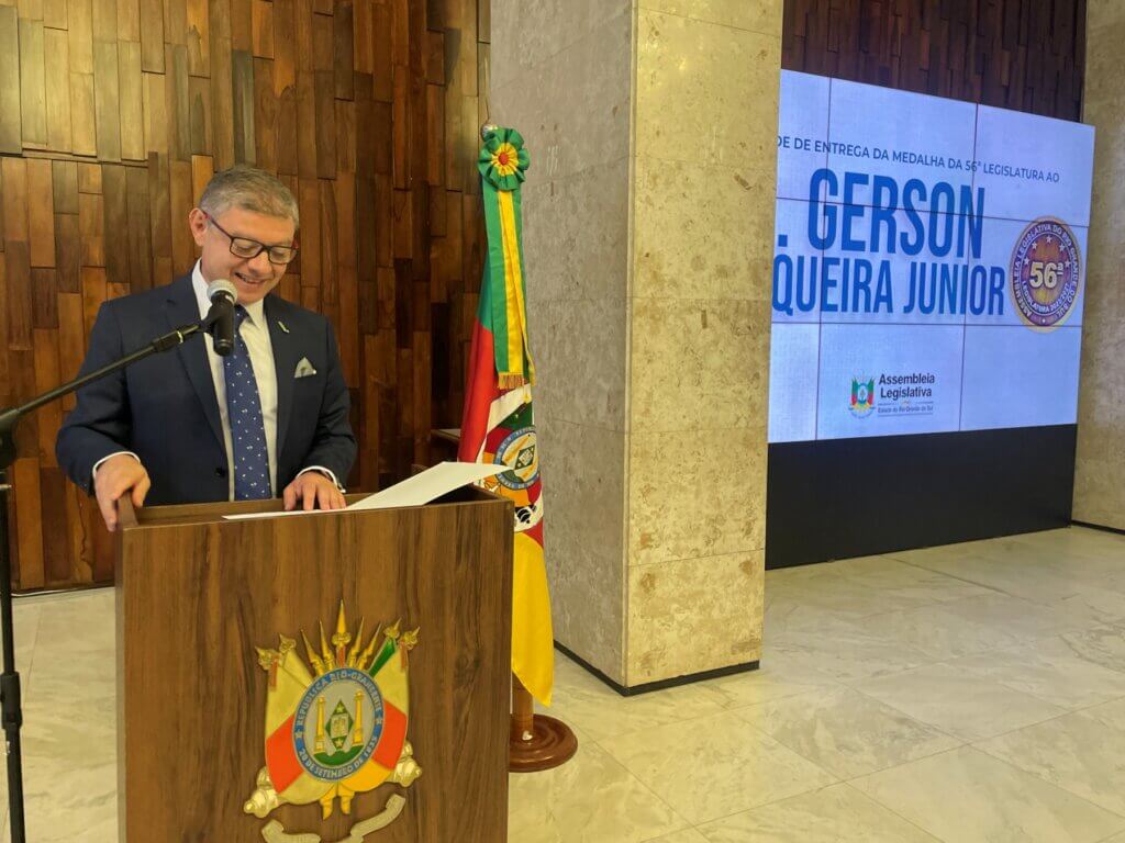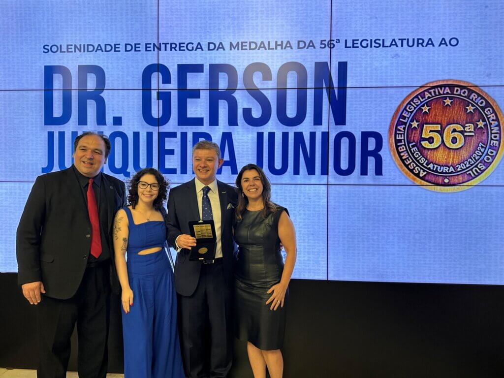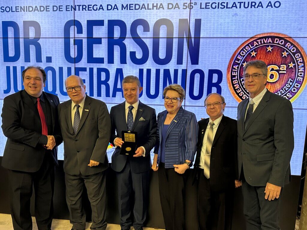 Em cerimônia marcada pela emoção e pelo sentimento de dever cumprido, o presidente da Associação Médica do Rio Grande do Sul (AMRIGS), Dr. Gerson Junqueira Jr., recebeu a Medalha da 56ª Legislatura, concedida pela Assembleia Legislativa do Rio Grande do Sul (ALRS), em reconhecimento ao papel desempenhado durante as enchentes que afetaram o estado. O evento contou com a presença de autoridades, representantes do setor da saúde, familiares e membros da sociedade civil. Ao discursar, o presidente da AMRIGS ressaltou o peso da liderança em momentos críticos.